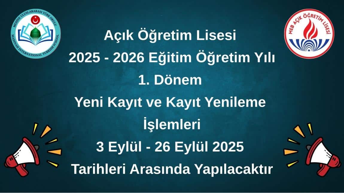 Açık Öğretim Lisesi 2025 - 2026 Eğitim Öğretim Yılı 1. Dönem ...