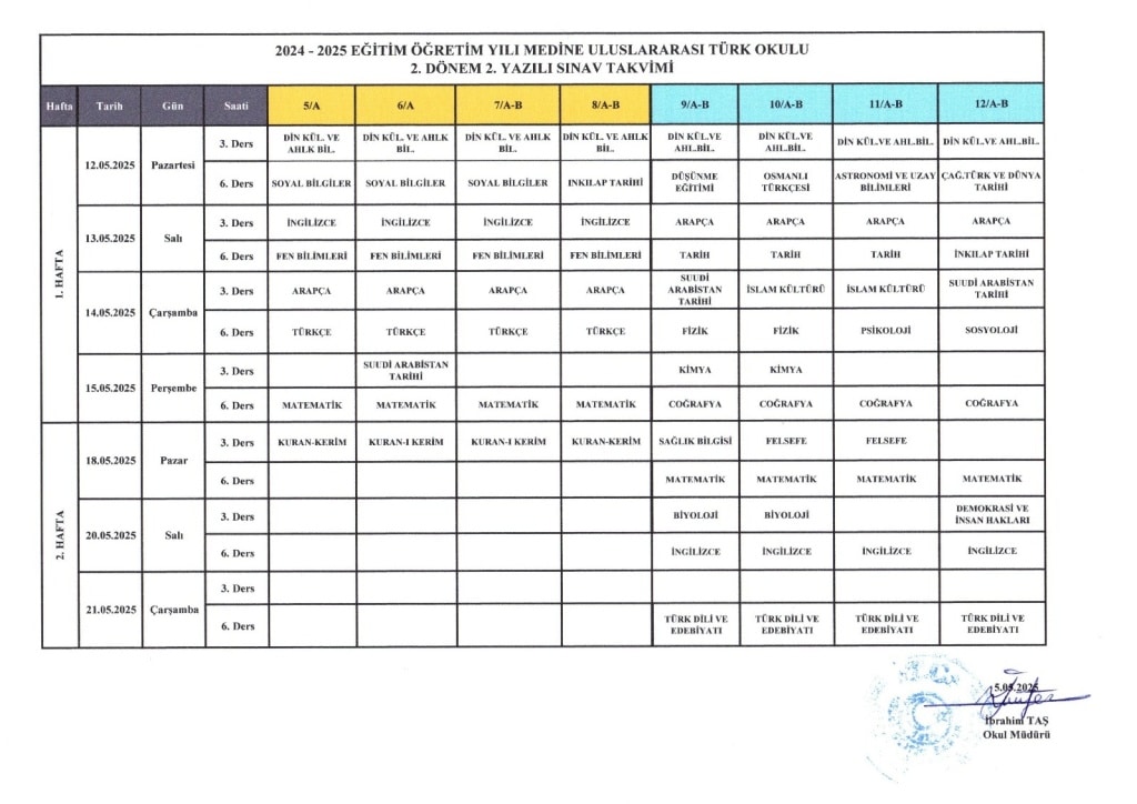 2. Kanaat Dönemi 2. Ortak Sınav Takvimi